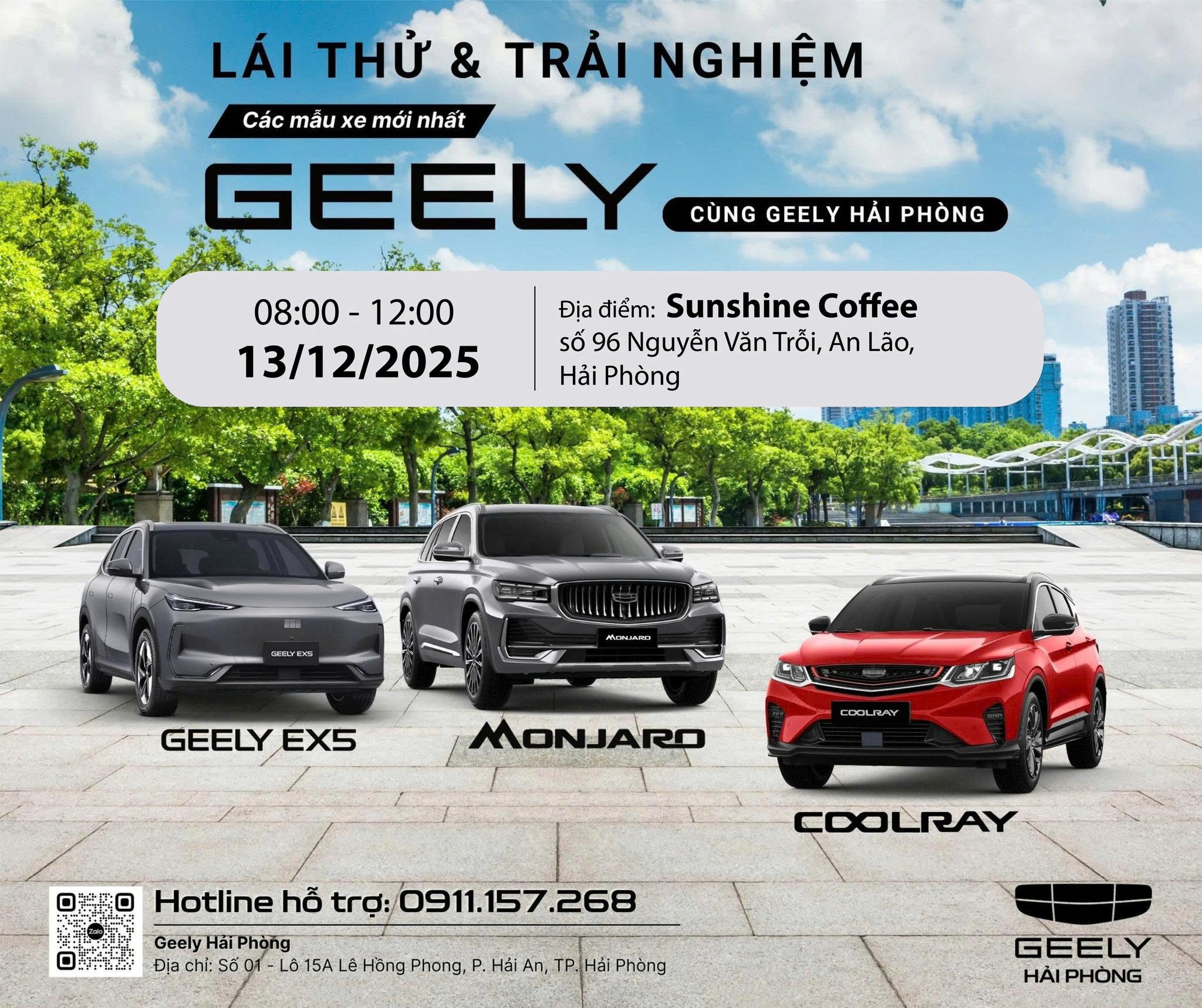 Kính mời Quý khách hàng đến tham dự Chương trình Lái thử & Trải nghiệm các mẫu xe Geely trong không gian cà phê sang trọng, thư giãn của Sunshine Coffee